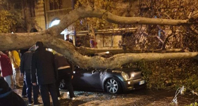 A Messina il forte vento di Ostro ha causato il crollo di un grosso albero su una vettura in transito nelle vicinanze della Prefettura. La grossa pianta è crollato centrando in pieno una Mino Cooper sulla quale viaggiavano un uomo e una donna rimasti incastrati tra le lamiere. Entrambi sono stati trasportati al Policlinico per le ferite riportate ma per fortuna non sono in gravi condizioni. (foto TempoStretto)