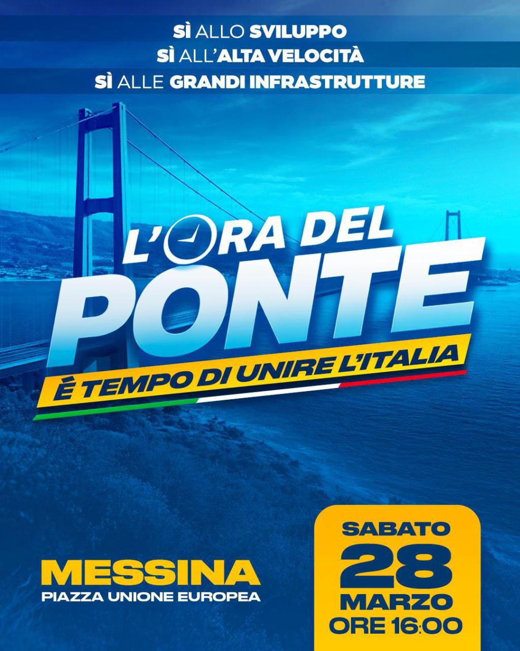 “Lo spopolamento è dovuto all’invecchiamento e alle poche nascite, ma soprattutto all’emigrazione di giovani in cerca di lavoro. Non è un fenomeno inarrestabile e il Ponte può rappresentare una svolta per il futuro della nostra Regione” spiegano i promotori de “L’ora del Ponte”, manifestazione in programma sabato 28 marzo alle ore 16 in piazza Unione Europea a Messina, che sta raccogliendo sempre maggiori adesioni con una quarantina di associazioni, sia per ribadire l’importanza strategica e urgente dell’opera, di cui si parla da tempo e che finalmente può vedere la luce, sia per riflettere sul futuro occupazionale e sulle prospettive di crescita del nostro territorio.