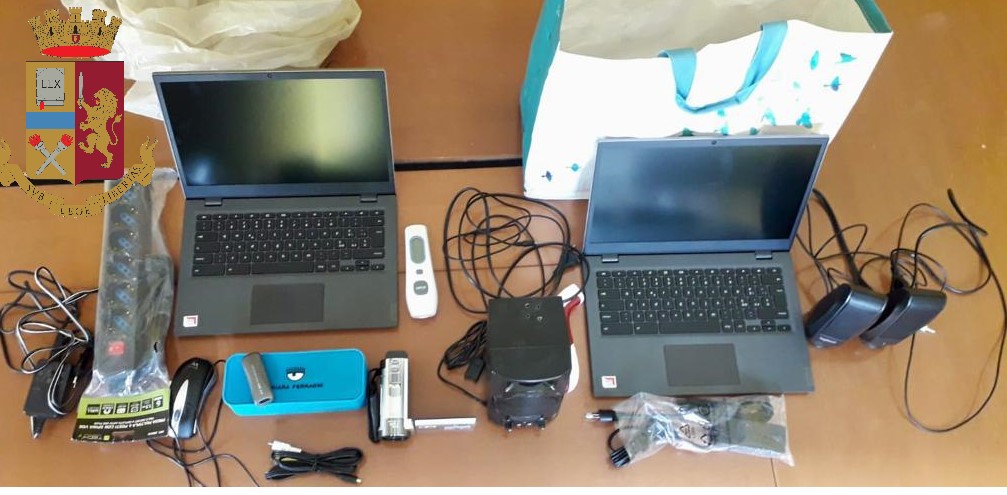 Lo stesso pomeriggio, personale dell’istituto scolastico ha rinvenuto nei pressi del cancello d’ingresso altra parte della refurtiva, riposta all’interno di una busta della spesa. Anche in questo caso si trattava di un pc portatile, alcune casse acustiche ed un termometro ad infrarossi: quanto ritrovato è stato sottoposto agli accertamenti degli investigatori, con lo stesso esito.