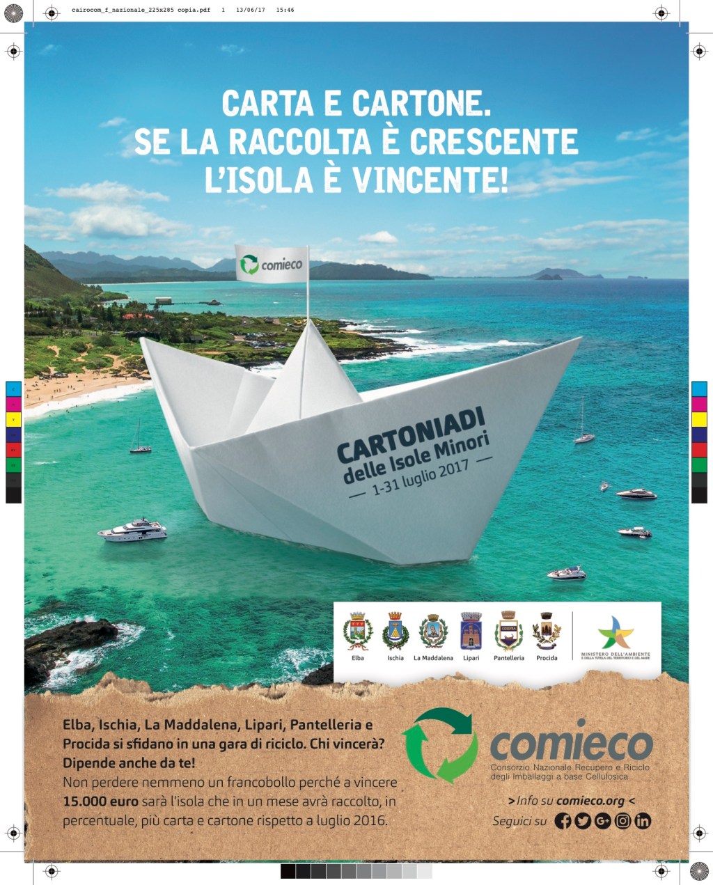 Ancora pochi giorni per vincere la sfida lanciata da Comieco – Consorzio Nazionale Recupero e Riciclo degli Imballaggi a base Cellulosica alle Isole Minori per aumentare e migliorare la raccolta differenziata di carta e cartone. C’è tempo infatti fino al 31 luglio per raccogliere carta e cartone e aggiudicarsi l’ambito premio di 15.000 euro che Comieco riconoscerà all’isola che alla fine del mese di luglio avrà raggiunto i migliori risultati di raccolta differenziata. Il montepremi sarà destinato al finanziamento di opere, beni o servizi di interesse pubblico e in favore del