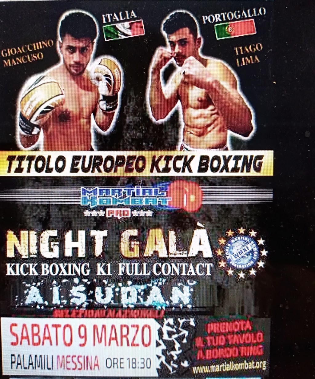 Occhi puntati su Gioacchino Mancuso, in corsa per la conquista della cintura di campione europeo per la Martial Kombat Pro, che salirà sul ring oggi contro il forte atleta portoghese Tiago Lima.