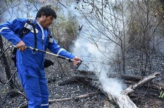Bolivian President #EvoMorales has been leading the efforts to fight fires across the country. #UnidadEnLaAdversidad pic.twitter.com/tgezUgTVx8