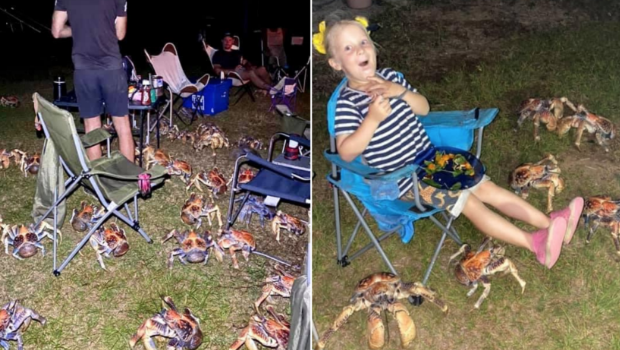 Tuttavia, questi crostacei sono noti per ‘assaltare’ i campeggi locali in cerca di qualcosa da mangiare. I granchi, comunque, si sono mostrati indifferenti nei confronti degli esseri umani. Uno, persino, si è arrampicato su un tavolo per fare uno spuntino.