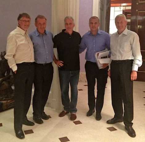 Bill Gates (a sinistra) con Jeffrey Epstein (al centro) in un’immagine pubblicata nell’ultimo lotto di file