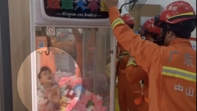 A little boy was rescued by firefighters in Zhongshan, south #China‘s Guangdong Province after he crawled into a claw machine and got trapped pic.twitter.com/XjafsAahKQ