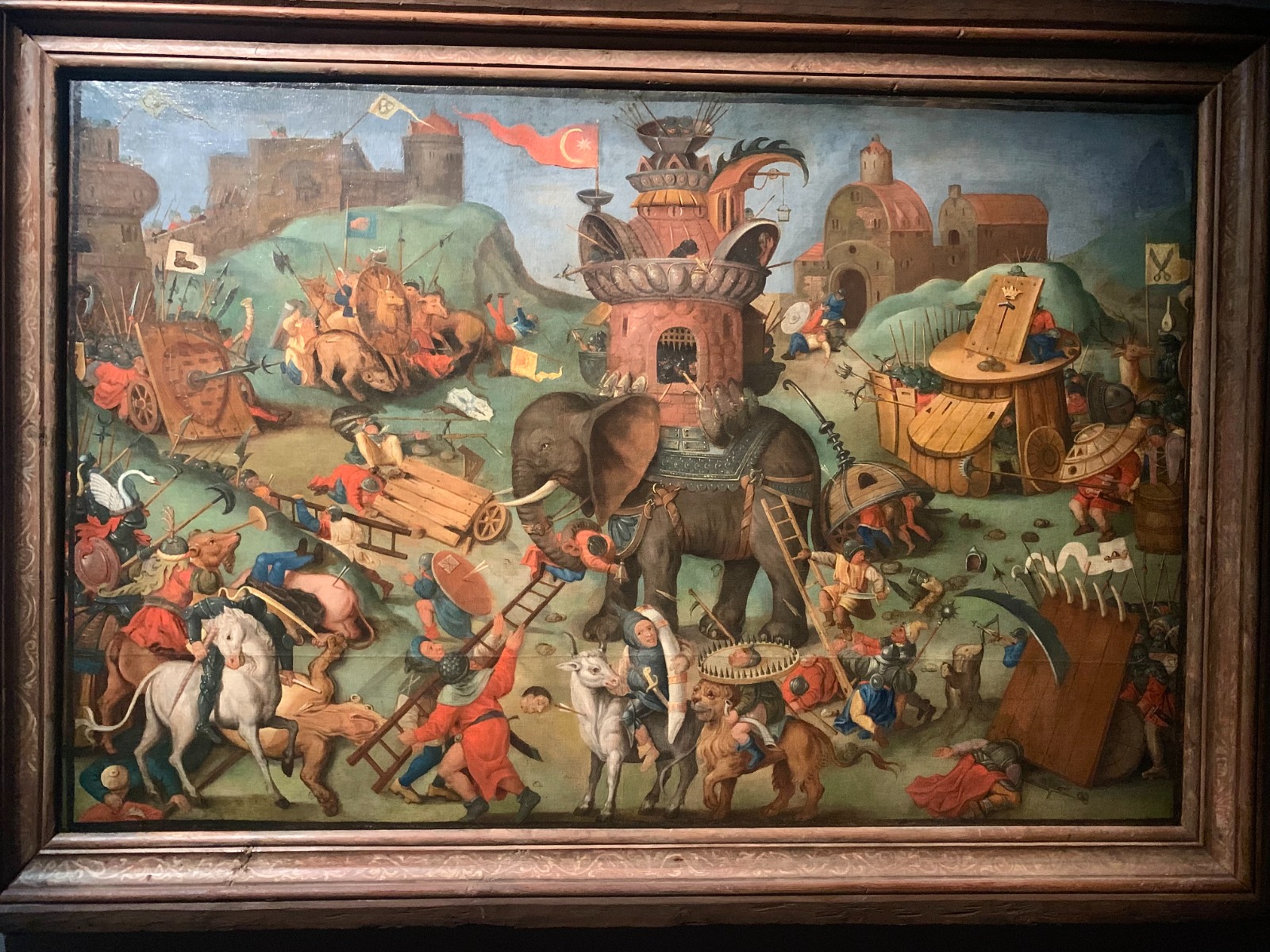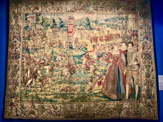 Preziosissimi la serie di quattro arazzi “alla maniera di Bosch”, che non è mai stata esposta integralmente al di fuori della Spagna, messa in confronto con il cartone dell’Elefante, proveniente dalle collezioni delle Gallerie degli Uffizi e modello per il quinto arazzo oggi perduto.