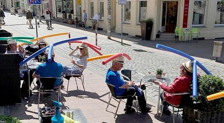 Come raccontato dal Daily Mail, i clienti del Cafe & Konditorei Rothe, a Schwerin, devono mettersi sulla testa, quindi, dei cappelli di paglia con due noodle da piscina fissati in cima. Una foto è stata condivisa su Facebook e, naturalmente, ha fatto in poco tempo il giro del social media.