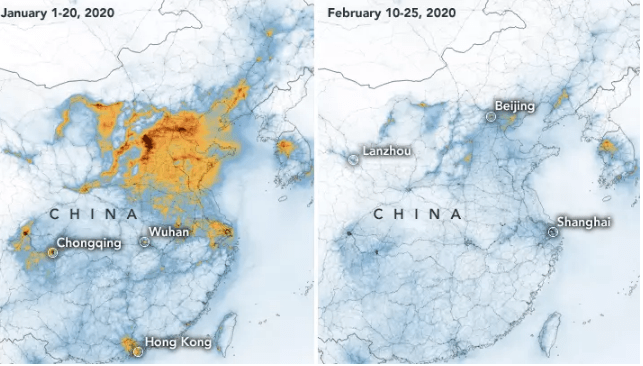 L’epidemia di coronavirus in Cina sta avendo un effetto positivo sull’inquinamento. Certo, è drammatico che ciò stia avvenendo per il COVID-19 che sta causando molta apprensione e soprattutto vittime in tutto il mondo ma è un dato di fatto, come dimostrato dalle immagini satellitari diffuse dalla NASA.