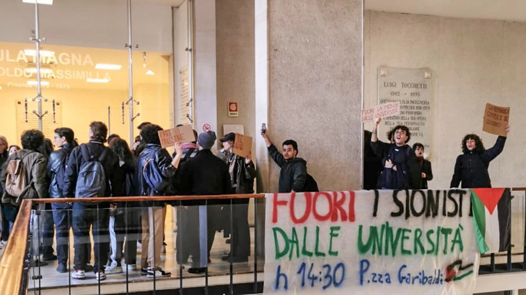 All’interno della facoltà, è stato esposto uno striscione con scritto Fuori i sionisti dalle università – ore 14.30 Piazza Garibaldi, come invito a partecipare a una protesta programmata per lo per lo stesso giorno a Napoli.