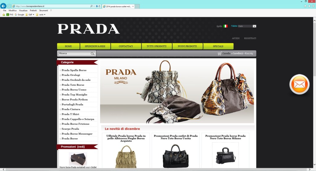 Gli stessi prezzi dei prodotti offerti in vendita, equivalenti a quelli degli outlet ufficiali gestiti dalla griffe italiana, contribuivano a conferire credibilità al sito telematico, così come il sistema di pagamento, gestito dai maggiori circuiti di moneta elettronica, e di spedizione della merce affidato a primarie imprese del settore.