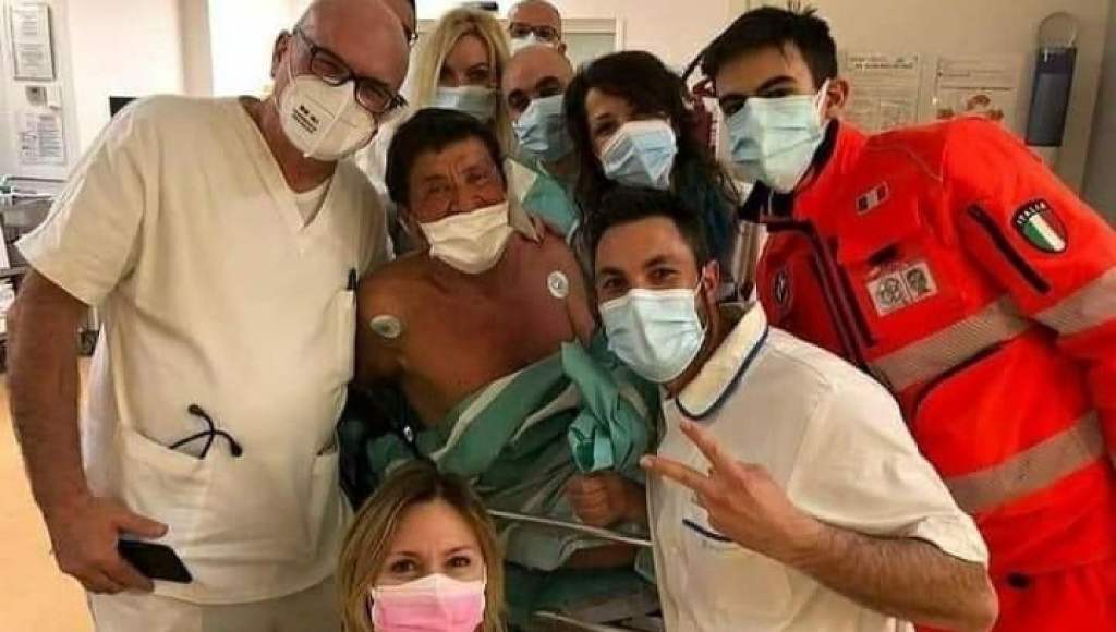 - Pubblicato anche un selfie del cantante con infermieri e medici.