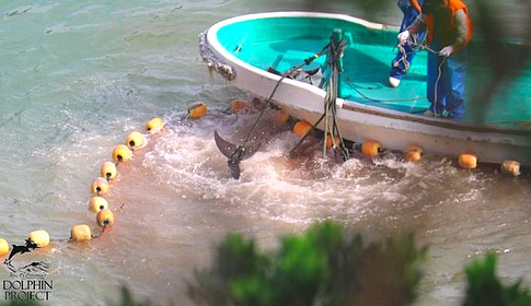 A documentare quanto succede nella baia sono i volontari di Sea Shepherd e del Dolphin Project. Quest’ultimo è stato voluto da Richard O’Barry, un ex addestratore di delfini americano che, gettato alle ortiche il suo lavoro, ha deciso di dedicare la vita alla salvaguardia dei cetacei. Un nome, quello di O’Barry, molto noto anche per essere stato l’addestratore del delfino “Flipper”, protagonista (anche se in realtà si trattava di più animali) di una serie televisiva degli anni sessanta. Fu proprio quando mori tra le sue braccia uno dei delfini addestrati, che O’Barry decise di dare una sterzata alla sua vita.