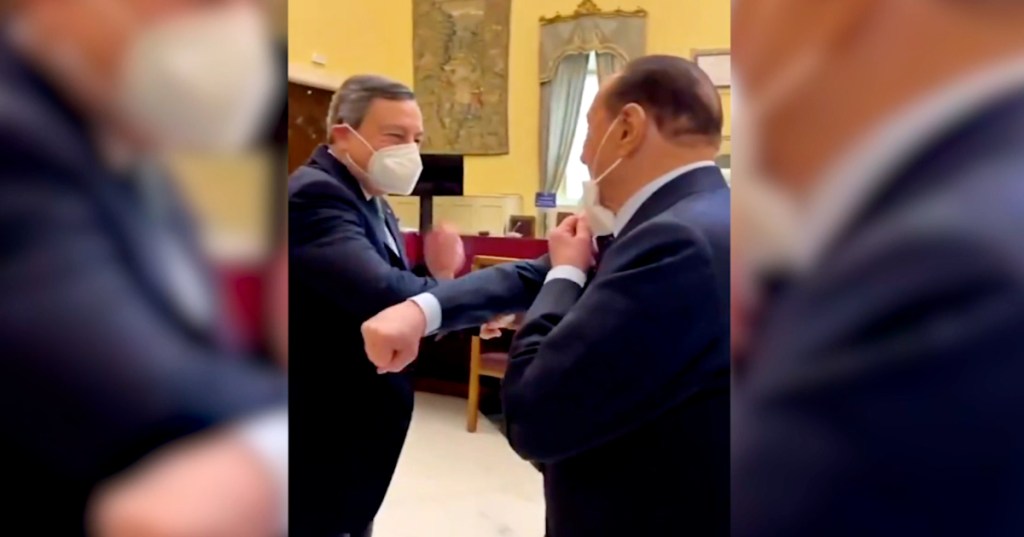 «Ciao, ciao, guarda come ci si deve salutare ora…», la risposta dell’ex presidente del Consiglio, che si è scostato di poco la mascherina dal volto e ha salutato l’ex presidente della Banca Centrale Europea nella Sala della Lupa, sfiorandosi il ‘gomito’ al posto della stretta di mano nel rispetto delle misure anti Covid-19.