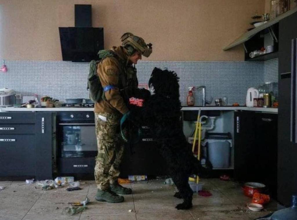 Due giorni fa, martedì 29 marzo, i soldati ucraini, perlustrando le case vicino alla capitale Kiev, hanno trovato un cane abbandonato tra le macerie causate dai bombardamenti russi.