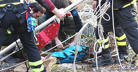 Ad avvisare i soccorritori, informa l’ENPA di Trieste, è stata una signora. Subito l’intervento si è presentato particolarmente difficile. E’ stato lo stesso Comandate della squadra dei Vigili del Fuoco accorsa nei luoghi, a calarsi in corda all’interno della grotta. A seguire anche il Veterinario dell’ENPA che ha provveduto a sedare il povero animale. In tale maniera è stato possibile imbragarlo e portarlo in superficie. Per fortuna il capriolo ha riportato solo ferite di lieve entità consentendo così di disporre il ricovero presso il Centro Recupero Fauna Selvatica gestito dall’ENPA di Trieste.