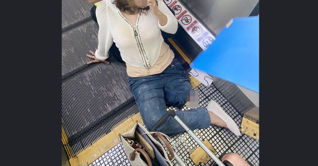Una viaggiatrice di 57 anni è inciampata mentre stava per imbarcarsi su un volo e la sua gamba si è incastrata nella scala mobile.