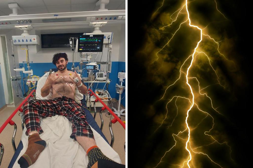 Rowan, che vive nell’Oxfordshire con il marito Aaron, è crollato a terra ed è stato portato d’urgenza in ospedale, dove i medici gli hanno detto che era stato colpito da un fulmine.