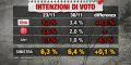 Nel centrodestra stabile Forza Italia e in calo la Lega. leggera risalita di Fratelli d’Italia (0,1%).