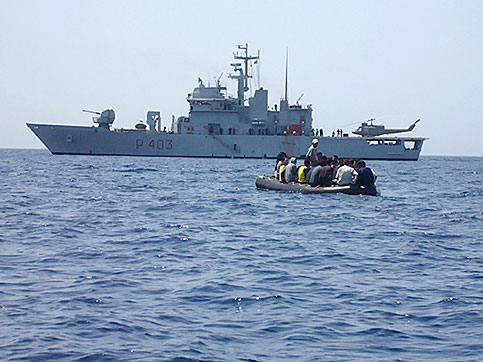 Il gommone è stato ‘intercettato’ nel Canale di Sicilia, a circa 20 miglia dalle coste libiche.