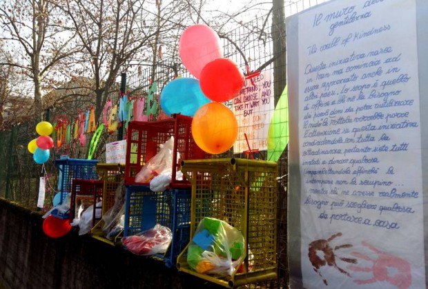 Oltre la recinzione dell’asilo è stato creato il Muro della gentilezza, dove si possono lasciare oggetti, indumenti, giochi che possono essere d’aiuto a chi non può permettersi di comprarli. Quindi c’è uno scambio, all’insegna della solidarietà e dell’aiuto concreto. Una testimonianza pratica per aiutare i più sfortunati, e altamente educativa per i bambini che imparano cos’è l’altruismo e la generosità. Il Comune ha appoggiato l’iniziativa e fa sapere che chiunque può donare oggetti, abiti non sciupati ma incartati e altri, che ne sono privi, possono prenderli liberamente.