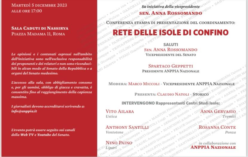 La nuova realtà delle isole d‘esilio del periodo fascista. Su impulso dell’associazione nazionale perseguitati politici italiani antifascisti (Anppia) nasce l’idea di fondare una rete delle isole di confino. Martedì 5 dicembre, su iniziativa della vicepresidente Anna Rossomando, verrà presentata, presso la sala stampa del senato, la proposta di costituzione del coordinamento della rete delle isole di confino. Ventotene, Ponza, Ustica, Pantelleria e Tremiti, alcune delle isole utilizzate come terre d’esilio durante il periodo di relegazione, realizzano una rete la cui finalità è il potenziamento della coscienza storica dell’esperienza del confino e la valorizzazione del patrimonio legato ai luoghi.