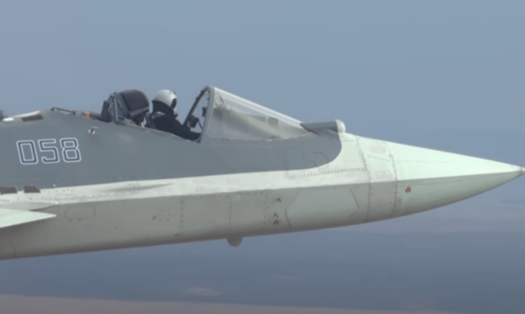Il Sukhoi Su-57 è un aereo da guerra, noto anche come T-50-8, progettato per trasportare l’avanzato missile ipersonico Kinzhal a capacità nucleare che opera a una velocità di dieci volte superiore al suono.