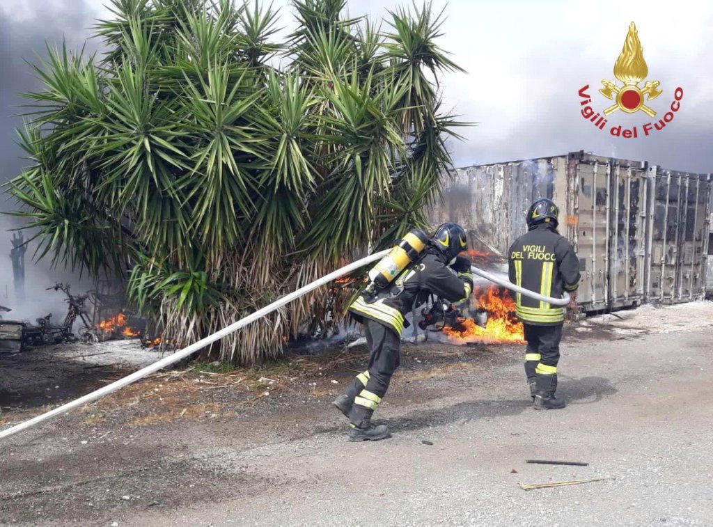 Le fiamme hanno coinvolto capannoni industriali, all’interno dei quali si trovavano anche bombole gpl, causando diverse esplosioni. Ne sarebbero scoppiate almeno 50.