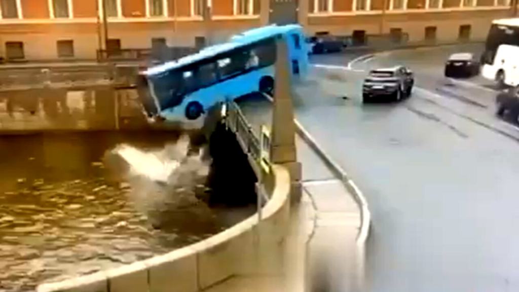 Nel quartiere Admiralteysky di San Pietroburgo, in Russia, un grave incidente ha coinvolto un autobus che è precipitato dal “ponte dei baci” nel canale della Moika dopo uno scontro con un’auto di car sharing.