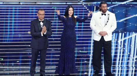 Presenta anche il nuovo brano, Sono un grande: “Finalmente anche io posso dirmi bravo per quello che ho fatto e che non ho fatto, anche contro gli hater”. Poi scherza con Laura Pausini: “Il prossimo anno io e te insieme, se Carlo se ne va, vengo io”.