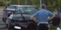 La macchina è finita sullo spartitraffico, abbattendo la staccionata di legno e diversi pali della segnaletica verticale.