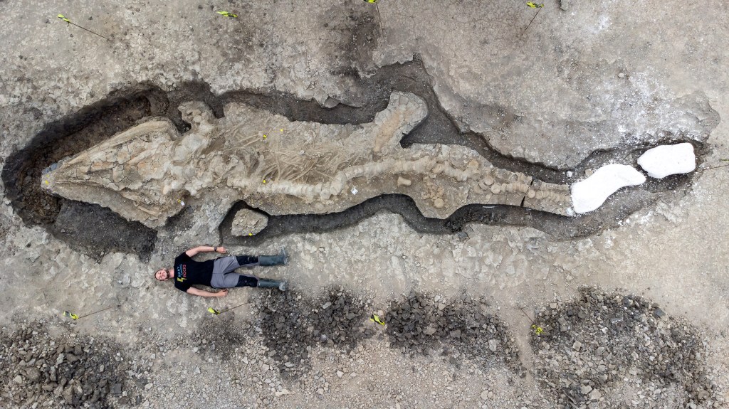 “È il più completo e più grande di qualsiasi scheletro di dinosauro mai trovato qui, quindi è un mega ritrovamento per tante ragioni”, ha detto il paleontologo Dean Lomax, che ha guidato lo scavo. “È stato in cima alla catena alimentare. È forse stato uno dei più grandi animali marini del mondo”.
