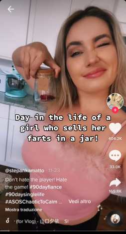 Questa giovane, Stephanie Matto (nomen omen) ha trovato il modo di guadagnare 100.000 (centomila) dollari in sole tre settimane vendendo le sue scorregge in barattolo. Roba che Elon Musk levati e persino Gwyneth Paltrow, con le sue candele al profumo di vagina, può morire di invidia.
