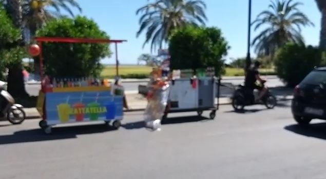 Il video mostra il classico venditore di ghiaccio e sciroppo alla frutta, la cosiddetta Grattalella palermitana appunto, che traina, a bordo di uno scooter elettrico, la sua postazione, scortato da un altro scooter. Sembra quasi un rituale quello immortalato al Foro Italiaco, che mostra come chi può, le trova tutte pur di riuscire a campare. E si è disposti anche a trainare per le vie di Palermo, con uno scooter elettrico, spinto anche dalla forza delle gambe, un pesante carretto pur di raggiungere il magnifico lungomare palermitano e riuscire a tirare qualcosa nel corso della giornata e portare un pezzo di pane a casa.