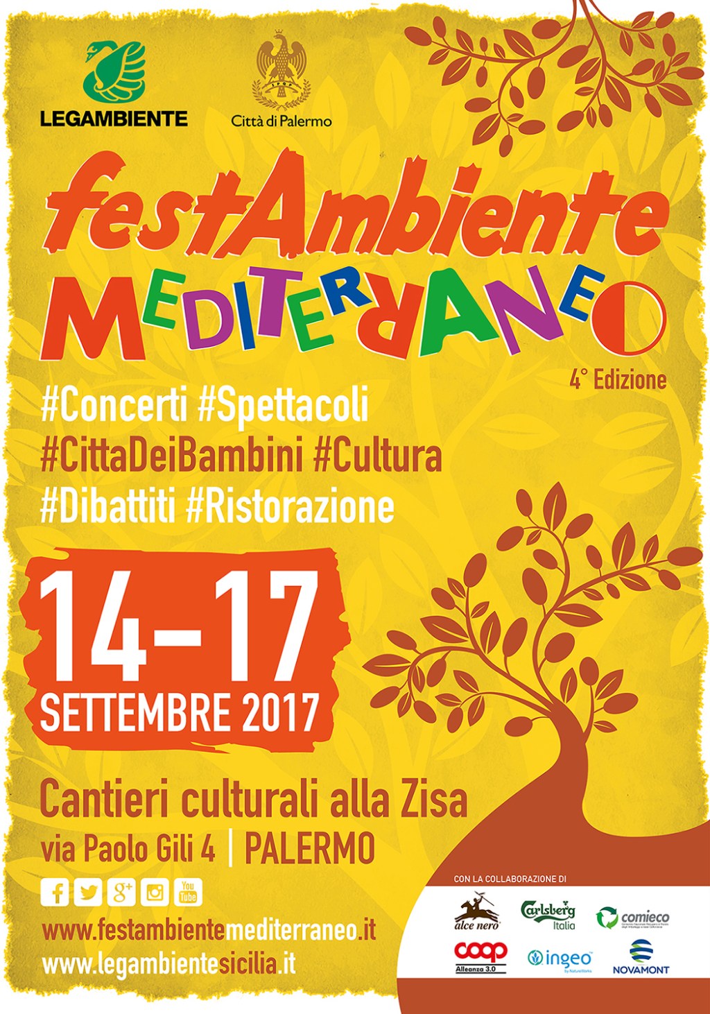 Si svolgerà da giovedì 14 a domenica 17 settembre 2017, presso i Cantieri culturali alla Zisa, la quarta edizione di “festAmbiente Mediterraneo”, un eco festival internazionale organizzato da Legambiente con il patrocinio del Comune di Palermo e dedicato ai temi del Mare Nostrum.