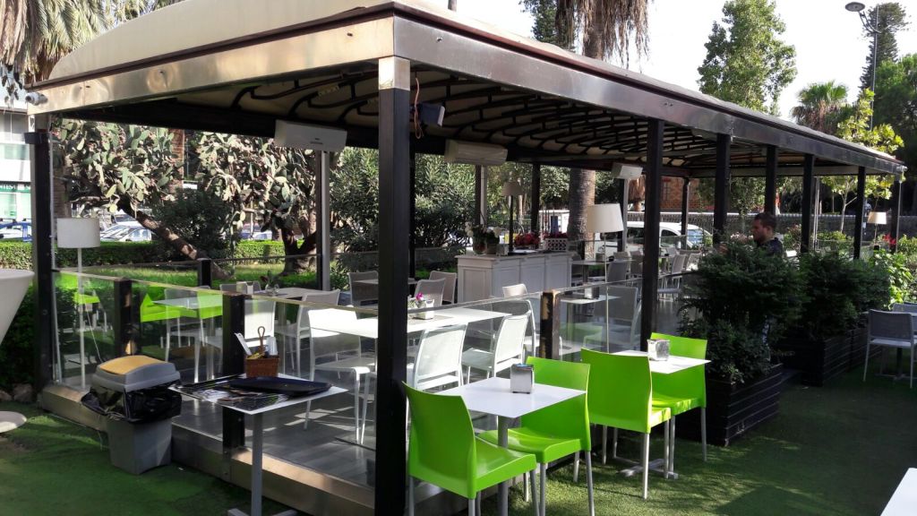 All’interno del gazebo, una struttura rettangolare in legno con superficie vetrata, arredato con 16 tavoli, 40 sedie in resina e due credenze in legno, veniva disimpegnato il servizio ai tavoli agli avventori .