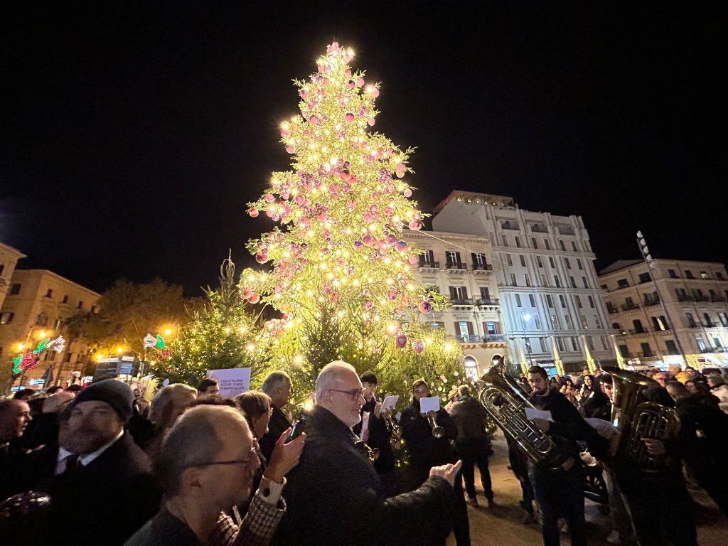 L’albero è stato acceso  alle 18, alla presenza del sindaco Roberto Lagalla, del vicesindaco Pietro Cannella e di Simon Thun, membro del CDA di Fondazione Lene Thun e Vicepresidente di Thun Spa. Sarà un momento di condivisione con la città, accompagnato dall’esibizione a cura del Teatro Massimo. La notte di Capodanno sarà invece protagonista il cantante Biagio Antonacci che si esibirà in piazza Politeama.