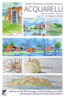 L’artista Giorgio Gristina, dopo l’antologica del 2011 Palazzo Jung di Palermo, espone una nuova serie di 50 acquarelli realizzati nel 2015 che raccontano i luoghi della Sicilia e dell’immaginario siciliano.