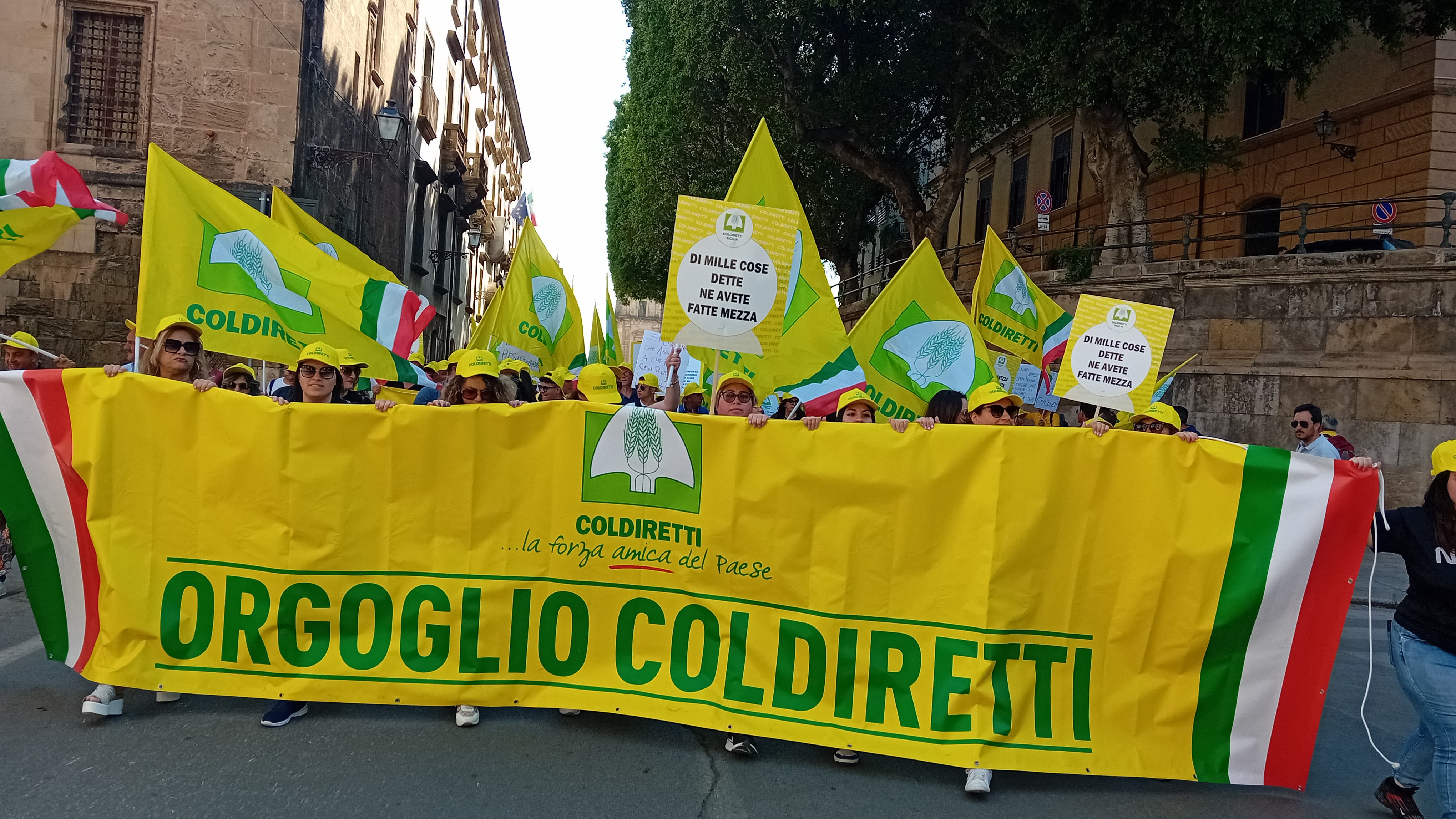 Punti di domanda messi in evidenza nella manifestazione di oggi organizzata a Palermo da Coldiretti Sicilia. Gli agricoltori siciliani si sono dati appuntamento al Foro Italico a partire dalle 7.30, per poi dirigersi verso piazza Marina, luogo di partenza del corteo. Più di un migliaio i presenti, i quali si sono fatti sentire con cori e slogan gridati a ritmo di tamburi. Intorno alle 10, il gruppo di manifestanti ha iniziato la propria marcia verso piazza Indipendenza, sede della presidenza della Regione Siciliana. Luogo nel quale i vertici della sigla agricola terranno un presidio per sensibilizzare l’attenzione del governatore Renato Schifani. Alla manifestazione in tanti si sono rivolti all’ex presidente del Senato, chi con cartelli e chi con la propria voce.