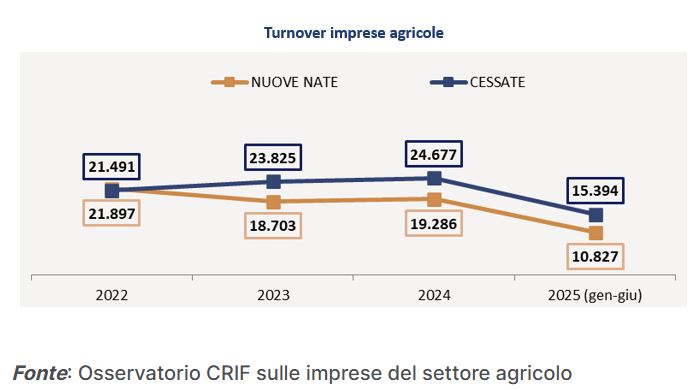 “In un contesto caratterizzato da sfide globali, come transizione ecologica, digitalizzazione, cambiamento climatico e volatilità dei mercati, l’agricoltura italiana mostra una buona tenuta sotto il profilo della rischiosità creditizia, con tassi di default inferiori rispetto al livello medio nazionale. Questi risentono positivamente della significativa presenza di cooperative agricole a mutualità prevalente, tipicamente caratterizzate da tassi di default più bassi in virtù dello stretto legame economico fra i soci e l’azienda stessa. Tale legame si traduce in un forte supporto dei soci all’attività della cooperativa, rappresentando un elemento di mitigazione del rischio. Nonostante l’incertezza e la complessità dello scenario, le prospettive per il settore agricolo vedono tassi di default che continueranno ad attestarsi su livelli inferiori al dato nazionale, seppur in lieve crescita entro la fine dell’anno”, commenta Luca D’Amico, Ceo di Crif Ratings.