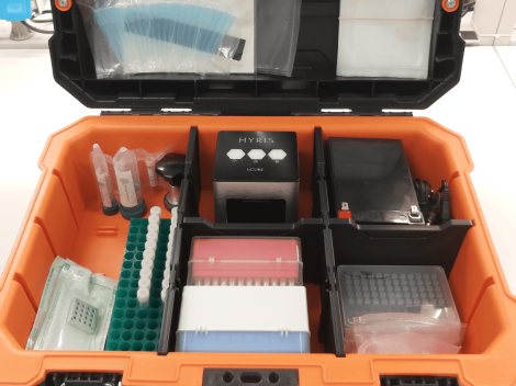 Sono stati sviluppati kit di rilevamento, basati di metodologie diagnostiche molecolari, per i più comuni virus che attaccano le colture ortive. Il laboratorio portatile sviluppato per l’analisi in campo contiene al suo interno tutti i reagenti, i materiali monouso e gli strumenti per la rilevazione in campo mediante test in tempo reale, come RT-qPCR e LAMP. Ciò permette di monitorare in modo continuo l’intera produzione, aiutando e seguendo i produttori durante il ciclo produttivo, riducendo in modo significativo la dispersione delle malattie sul territorio.