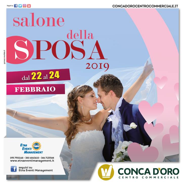 Tre giorni dedicati ai futuri sposi. Dal 22 al 24 febbraio, torna al centro commerciale Conca D’Oro di via Lanza di Scalea, il “Salone della sposa”, organizzato da Etna Eventi. Dalle ultime novità sugli abiti da cerimonia, alle tendenze riguardo agli addobbi floreali.