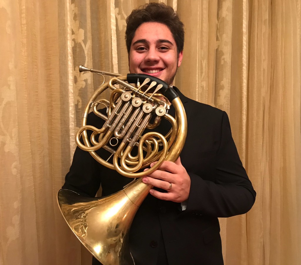 Antonino Alba. Palermitano, studia al conservatorio “Vincenzo Bellini” di Palermo, sotto la guida del Maestro Tommaso Sant’Angelo. Si perfeziona poi con l’ex Primo corno del Teatro Massimo di Palermo, Pietro Anfuso, e successivamente con Dale Clevenger, Michael Höltzel, André Cazalet, Danilo Stagni, Natalino Ricciardo. Nel 2016 vince l’audizione alla Youth Orchestra del Teatro dell’opera di Roma, orchestra diretta dal maestro Aldo Ceccato. E’ primo corno dell’orchestra Sinfonica Nazionale dei Conservatori. Si è esibito da solista in vari concerti con l’Orchestra da camera Siciliana, eseguendo il concerto n. 4 per corno K 495 di W.A.Mozart e ha collaborato con l’Orchestra Sinfonica Siciliana e numerose altre orchestre.