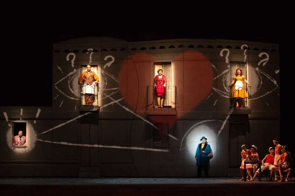 Il regista Giorgio Barberio Corsetti ha spostato l’azione dal 1806 agli anni Cinquanta e Sessanta, ricollegandosi a tutto quel filone del cinema italiano che mostra la provincia italiana, abitata da carabinieri, belle ragazze, seduttori, albergatori, turisti stranieri, ladruncoli, seduttori… «L’azione si sviluppa in una locanda sulla costa che abbiamo riprodotto con un impianto scenografico stampato interamente in 3D. Ne risulta un effetto di deformazione alla Dalì dell’edificio che domina la scena». Una storia, quella di Fra Diavolo, che ha anche risvolti drammatici: «Sotto la leggerezza della musica si insinua un brivido inquietante; la scena fondamentale è quella del secondo atto, quando Fra Diavolo e i suoi complici progettano di uccidere Zerline per portare a termine indisturbati il loro furto, e la ragazza inerme e addormentata è in loro balìa: una tensione che pervade tutta l’opera e che, nelle immagini proiettate in scena, si traduce in grandi occhi che scrutano nel buio e in mani rapaci che si tendono, quasi per afferrare i personaggi».