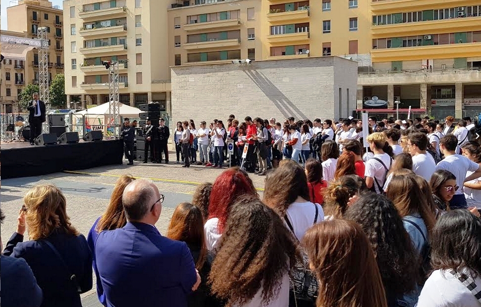 Oggi pomeriggio nel piazzale antistante il palazzo di giustizia, il sindaco Leoluca Orlando ha partecipato alla manifestazione “Notte bianca per la legalità”, organizzata dall’Associazione Nazionale magistrati in collaborazione con il Miur. Alla manifestazione erano presenti moltissimi ragazzi delle scuole siciliane, oltre al questore Renato Cortese, i vertici del Tribunale di Palermo e dell’Anm e all’assessore, Emilio Arcuri.
