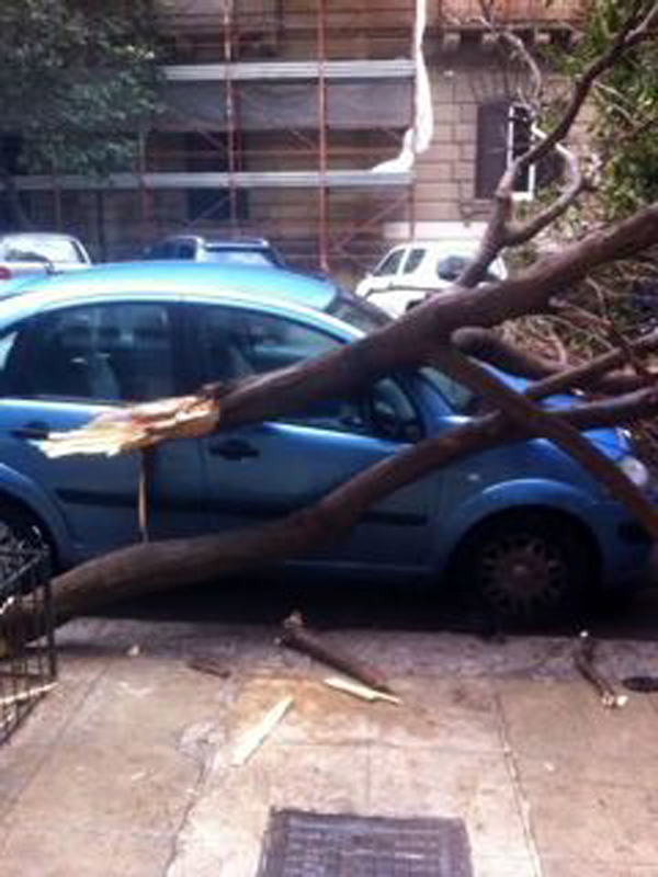 In via Guglielmo Marconi, traversa di via Sammartino, un albero è caduto sulle auto in sosta: una Volkswagen bianca e su una Citroën azzurra . Mentre i vetri di un palazzo in via Pasquale Calvi sono caduti in strada frantumandosi.