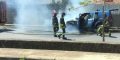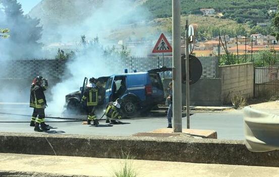 Il mezzo è stato avvolto dalle fiamme. Gli agenti hanno fatto di tutto per spegnerlo ma non ci sono riusciti.