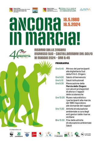 L’evento celebrativo è realizzato in collaborazione con l’assessorato regionale del Territorio e dell’Ambiente, il dipartimento dello Sviluppo Rurale, Arpa Sicilia e le associazioni ambientaliste, e promuove “Ancora in marcia!” che si svolgerà nella Riserva Naturale dello Zingaro, sabato 18 maggio 2024 – ingresso Sud (lato Castellammare), alle 8.45.