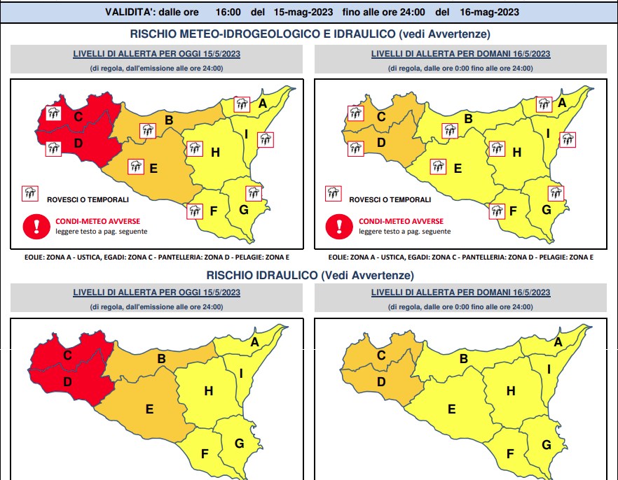 L’allerta passerà da rossa ad arancione per martedì 16 maggio. In sostanza è prevista una attenuazione delle condizioni di disagio ma permane sempre l’attenzione in merito al meteo. Rimangono le condizioni avverse. Le precipitazioni sono previste “Da isolate a sparse, anche a carattere di rovescio o temporale, su tutta l’isola, con quantitativi cumulati da deboli a puntualmente moderati”.