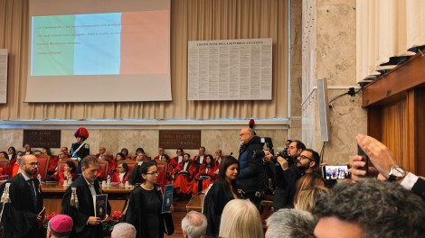 Anche in Sicilia l’inaugurazione dell’Anno giudiziario nelle Corti d’appello è caratterizzata dalla protesta dei magistrati contro la riforma della Giustizia. Sono stati forti i richiami alla Costituzione: a Palermo i magistrati sono entrati nell’aula magna con un mano una sua copia, mentre il presidente della Corte d’appello, Matteo Frasca, parlava con alle spalle una gigantografia di Giovanni Falcone.
