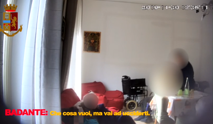 Una delle addette della casa alloggio è stata ripresa mentre rivolge all’uomo parole offensive: “Zitto, maledetto vecchio. Sei un maledetto vecchio…”.